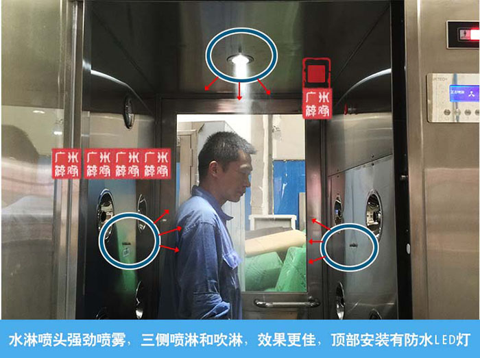 消毒風(fēng)淋室(噴霧殺菌風(fēng)淋室)滅菌霧淋室除了具備普通風(fēng)淋室的空氣吹淋的功能,還增加了水霧吹淋的功能。這樣的功能比普通的風(fēng)淋更一步加強(qiáng)了潔凈的作用。對于一些環(huán)境污染嚴(yán)重,可能對其他工位造成較大影響的工作,這樣的水霧風(fēng)淋室無疑是個重大的利好。